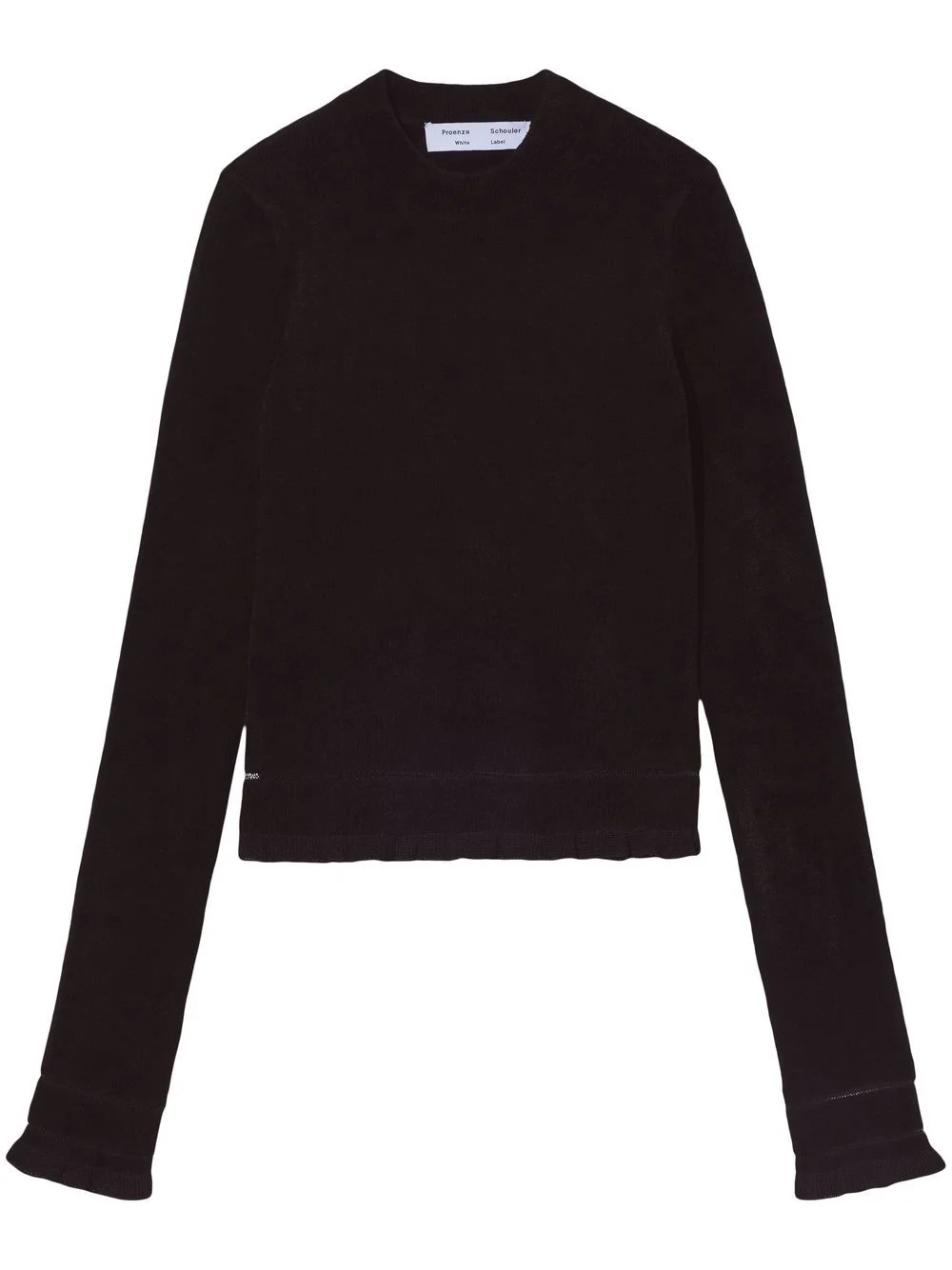 cropped chenille-texture jumper Highlights - Black - Knitted construction - Chenille texture - Round neck - Long sleeves - Ruffle hem Imported Composition Polyamide 52%, Viscose 47%, Spandex/Elastane 1% Washing instructions Dry Clean Only