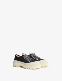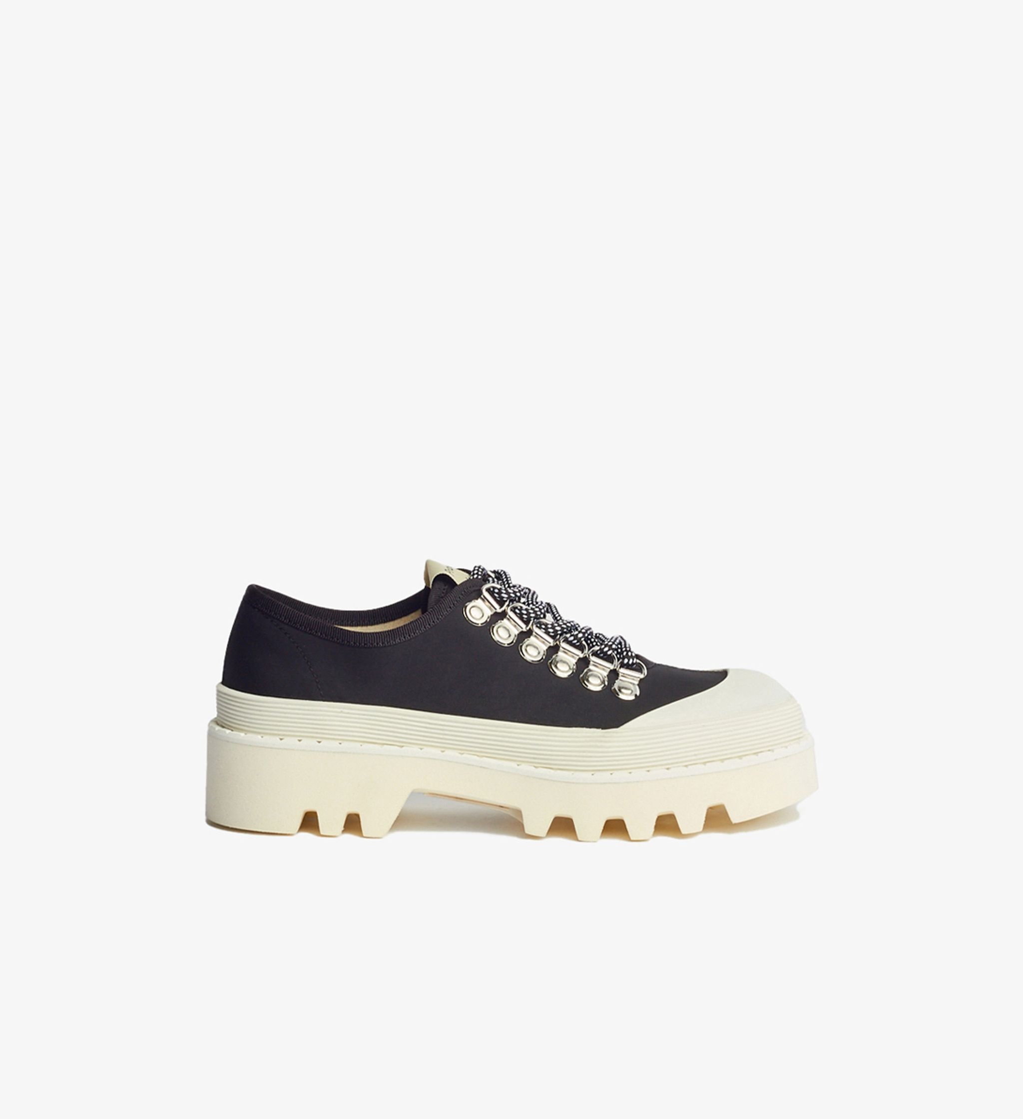 The utilitarian-inspired City Lug Sole Shoes feature a canvas low-top upper and a contrast chunky, vulcanized rubber lug sole. Lace-up front closure with silver-tone D-rings. Logo tag. Made in Italy. Upper: recycled nylon Outsole: rubber Heel height: 15 mm / 0.6" SKU: PS37120B15034999