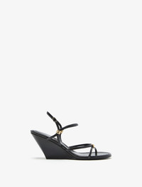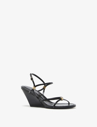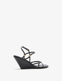 The Coil Wedge Sandals are crafted in slick, shiny nappa leather to a strappy silhouette with gold-tone accents. Details - Black - 70mm wedge - Strappy silhouette - Gold-tone fixed hardware - Side buckle closure - SKU: SH25S049L004WL001 Size & Fit - True to size Care - Please refer to care instructions provided with your order.