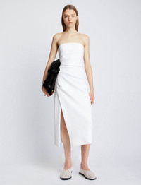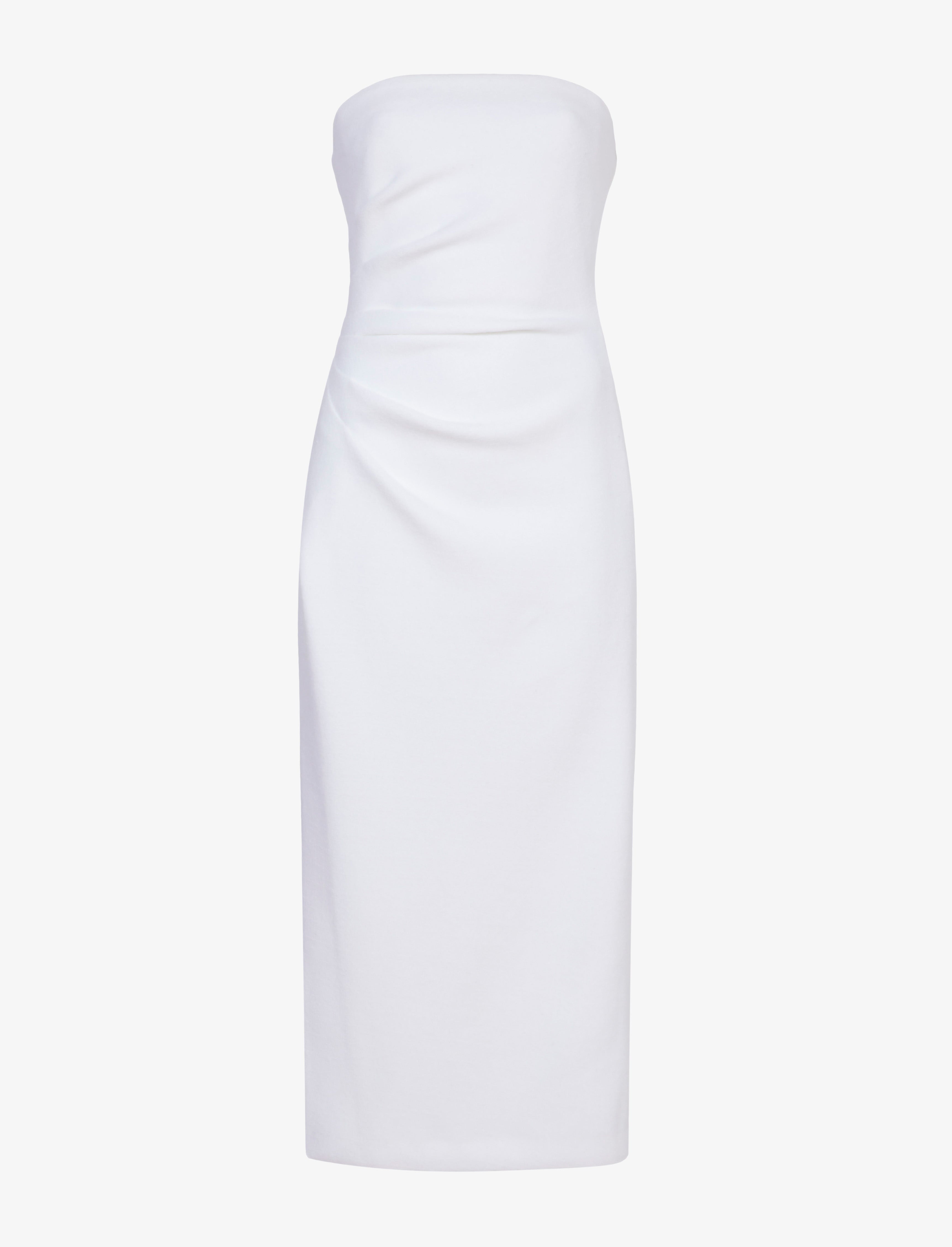 The Shira Strapless Dress in Matte Double Crepe is cut to a strapless silhouette with a gently gathered bodice. Falling to an ankle length, it's finished with a subtle slit at the side. Details - White - Strapless neckline - Gathered bodice - Side split - Mid-length hem - Slim fit - 70% triacetate, 30% polyester - SKU: R2433008BBY116100 Size & Fit - Model is 5'10'' with 33'' bust / 35'' hips. Wearing size 4 Care - 70% triacetate, 30% polyester - Dry clean only