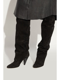 Cone boots Highlights - Black - Calf suede - Pull-on style - High cone heel - Thigh-length - Almond toe - Leather sole Made in Italy Composition Lining: Calf Leather 100% Outer: Calf Leather 100% Sole: Calf Leather 100%