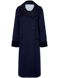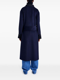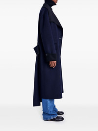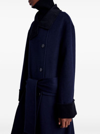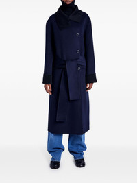 Constance coat Highlights - Navy blue - Wool-cashmere blend - Pinstripe melton - Panelled design - Double-breasted button fastening - Buttoned high neck - Tied waist - Two side flap pockets - Buttoned turn-up cuffs - Straight hem - Mid-length Imported Composition Wool 56%, Polyester 29%, Cashmere 10%, Nylon 2%, Rayon 1%, Acrylic 1%, Cotton 1%