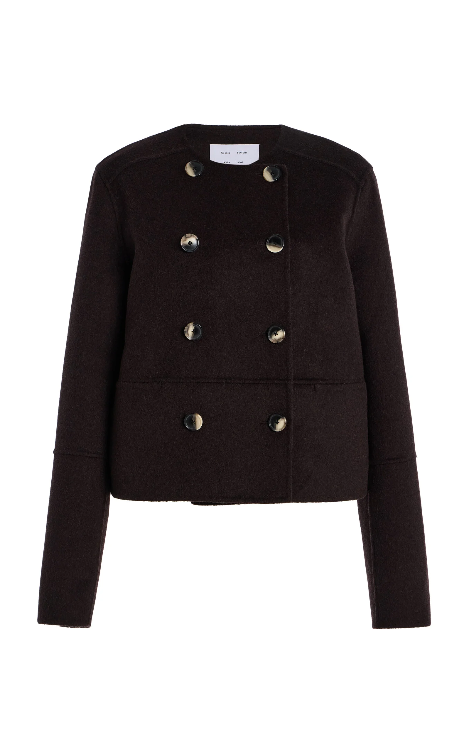 Proenza Schouler White Label was created to bridge the gap between the high-end and everyday. The 'Courtney' collarless jacket has a boxy fit made from a wool-blend with a touch of cashmere for softness. PRODUCT DETAILS - Fall '25 - Button fastening - Composition: 50% wool, 40% other, 10% cashmere - Designer color: Hickory - Dry clean - Imported