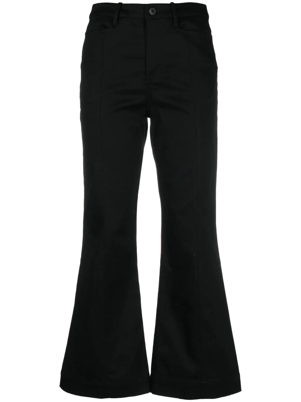 cropped flared trousers Crafted from a stretch-cotton construction, these cropped trousers from Proenza Schouler inject charm through their fluid flared silhouette. Highlights - Black - Stretch-cotton - High waist - Belt loops - Front button and zip fastening - Two front pouch pockets - Seam detailing - Two rear patch pockets - Flared design - Cropped leg Made in Italy Composition Outer: Cotton 97%, Spandex/Elastane 3% Lining: Cotton 100% Washing instructions Machine Wash