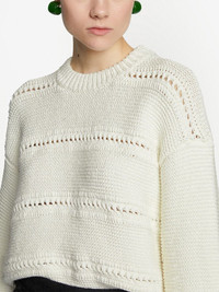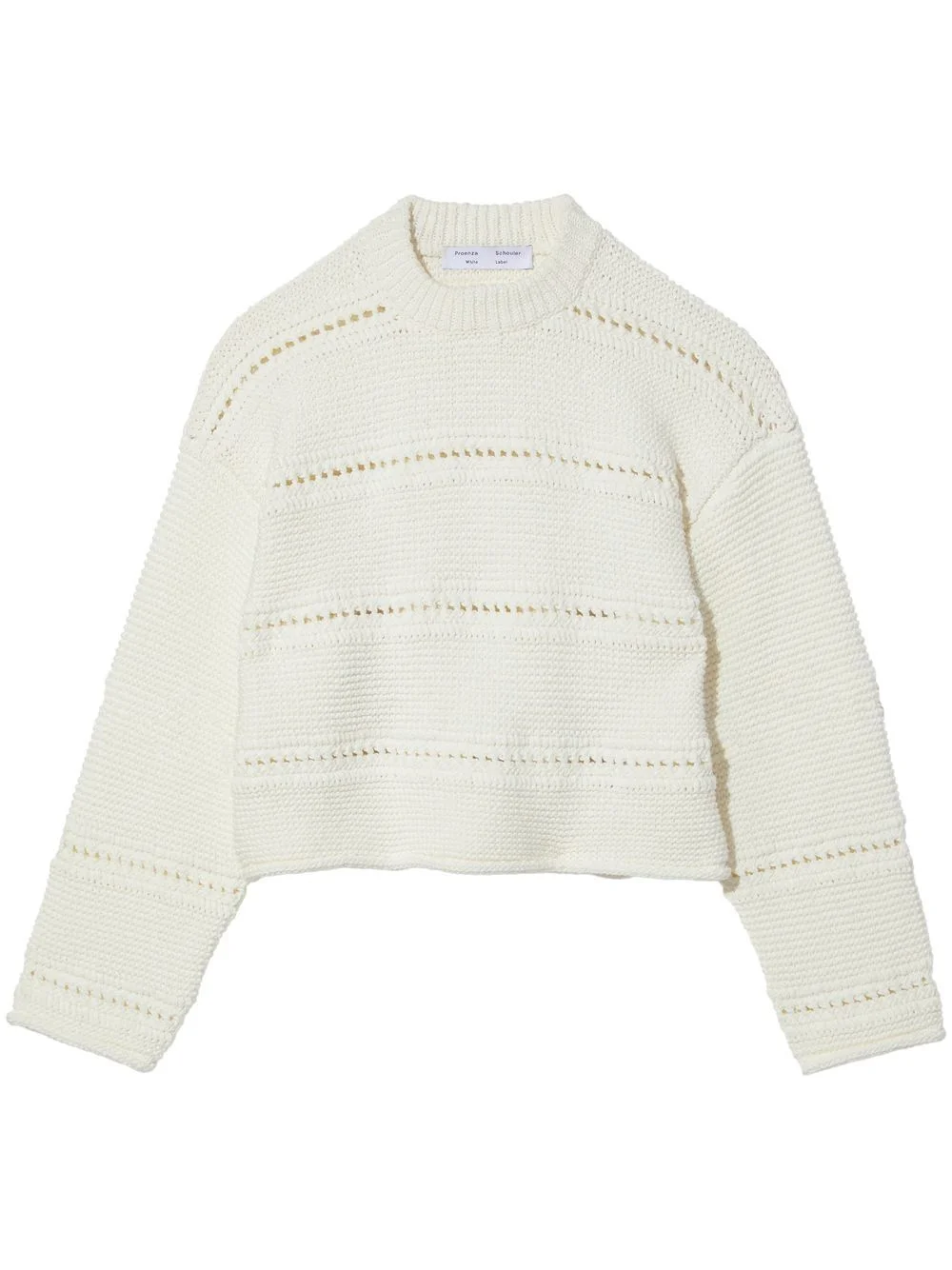 cropped open-knit jumper Proenza Schouler White Label's jumper is woven from ecru cotton with miniature cut-outs that reveal flashes of skin. The ribbed collar offers a touch of definition to the relaxed silhouette. Imported Composition Cotton 100%