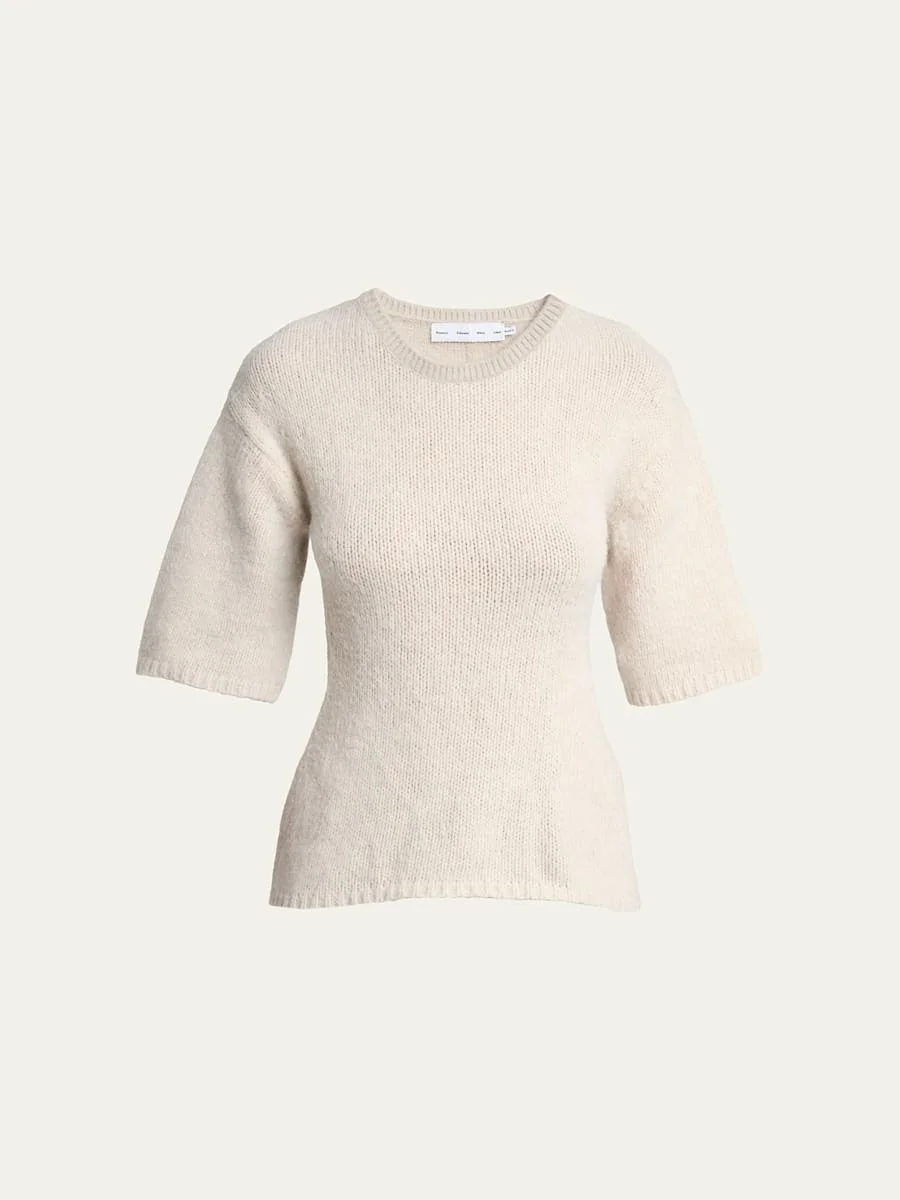 Proenza Schouler "Dana" sweater crafted from an ultrasoft wool blend Crew neckline Dropped shoulders Short sleeves Cinched silhouette Hem sits at the hip Pullover style Nylon/polyamide/acrylic/wool Dry clean Imported SIZE amp; FITModel measurements: 5'10" tall Model is wearing a US size 4/Small