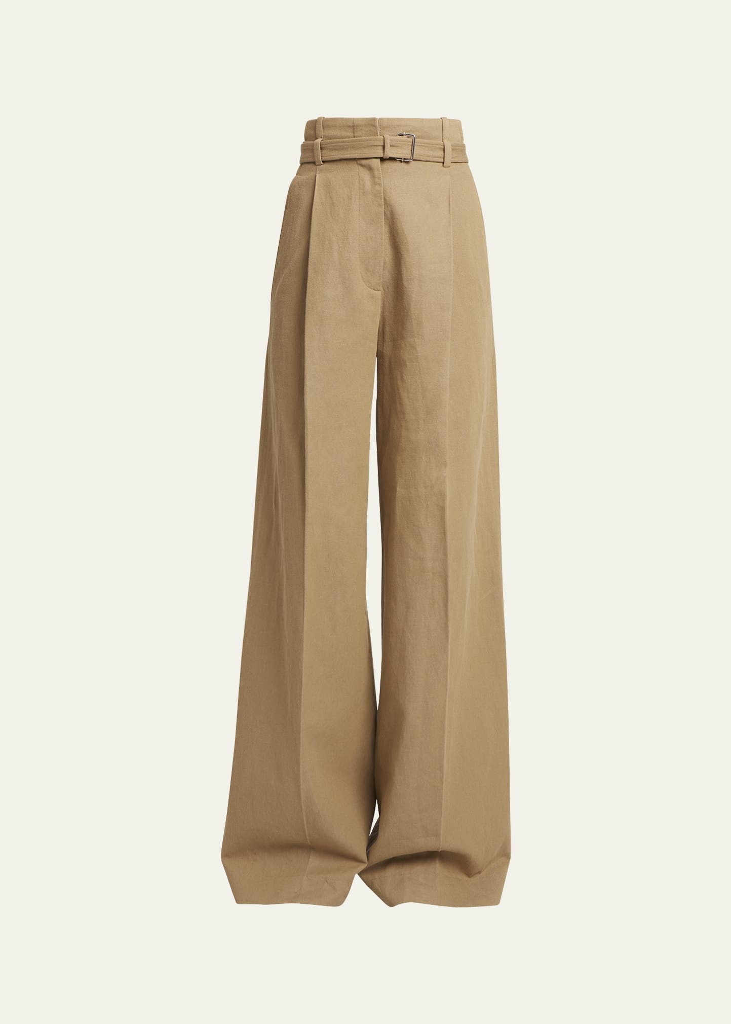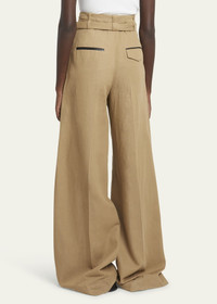 The Dana Pant in Cotton Viscose is tailored to a high waisted wide leg silhouette. Detailed with center pleating, side slip pockets and faux leather trim. Finished with loops around the waistband and a matching belt. Details - Hazelnut - High waist - Belt loops - Matching waist belt - Concealed front closure - Side slip pockets - Pressed pleats - Wide leg - Full length - 80% cotton, 20% linen - SKU: R2436009AC141242 Size & Fit - Model is 5'10'' with 33'' bust / 35'' hips. Wearing size 4 Care - 80% cotton, 20% linen - Dry clean only