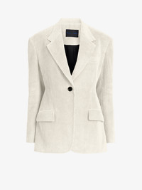 The Daria Jacket In Corduroy features a tailored, single-breasted silhouette with front flap pockets and vents at the sleeve ends and back. Details - Ecru - Notch lapels - Button fastening - Patch pockets - Sleeve vents - Loop at back neck - Back vent - Slim fit - Lined - 100% cotton - SKU: R2542004CC006103 Size & Fit - Model is 5'11'' with 30'' bust / 35.5'' hips. Wearing size 4 Care - 100% cotton - Dry clean only