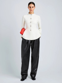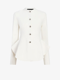 The Dasha Jacket in Compact Viscose is sculpted to an peplum silhouette with an accentuated flounce. Finished with silver dome front button fastenings. Details - White - High neckline - Long sleeves - Silver dome button fastenings - Accentuated flounce at waist - Peplum silhouette - 62% viscose, 36% polyamide, 2% lycra - SKU: R2617316KY412102 Size & Fit - Model is 5'10'' with 32'' bust / 34'' hips. Wearing size Small Care - 62% viscose, 36% polyamide, 2% lycra - Dry clean only