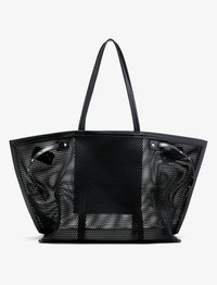 The Days Carryall in Mesh is crafted in a lightweight, mesh fabrication. Designed in a large carry-all silhouette, it features functional silver-tone side buckles that allow the corners of the bag to be folded inwards or worn loose for a relaxed finish. The tote has a magnetic top closure with an internal monogrammed zip pocket and two patch small patch pockets. Finished with a leather base panel and an exterior embossed logo. Details - Black - Lightweight mesh - Carry-all silhouette - Two handles - Magnetic top closure - Side buckle details - Embossed logo - Zip pocket - Patch pockets - Silver-tone hardware - Bombay edges - Leather base panel - Bag/accents: 80% polyester, 20% calfskin - SKU: HB253096X506S001 Size & Fit - W: 59cm x H: 29.5cm x D: 22cm - Shoulder Drop Length: 27cm Care - Bag/accents: 80% polyester, 20% calfskin - Our bags are hand crafted using genuine leather. Variations in tone, marks or grain are common and should not be considered imperfections. Like all natural materials, leather reacts to the atmosphere. Humidity, rain, and sunlight can damage leather. Should a slight white coating appear on the surface of the leather, it can easily be removed using a dry cloth. Should the leather get wet, please absorb the water immediately with a dry cloth. Overexposure to sunlight can stain or alter the color of the leather.