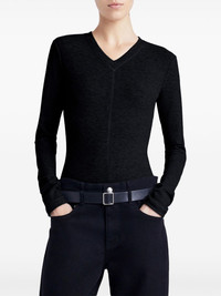 Delaney bodysuit Highlights - Black - Stretch-design - Brushed rib - No fastening - V-neck - Long sleeves - Rear slit - Embroidered logo to the rear - Finished edge - Thong style - Just a reminder that this piece must be tried on over your own garments. Imported Composition Rayon 66%, Polyester 29%, Spandex/Elastane 5%