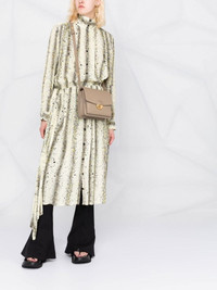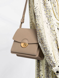 The Dia Day Bag is crafted in smooth taupe leather to a structured box shape with a curved front flap. Features a brushed gold-tone metal push-lock closure and tonal topstitching. Detachable, adjustable shoulder strap. Hand-painted edges. Interior zip pocket. Calf leather. Made in Italy. W: 20.5cm x H: 18cm x D: 9.5cm Shoulder Strap: 54.5cm SKU: H01032C289V270