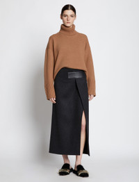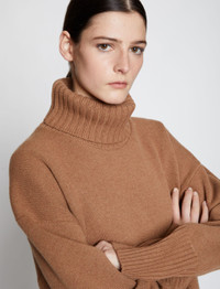 Core Collection The Doubleface Eco Cashmere Oversized Turtleneck Sweater in brown is crafted in soft double-faced cashmere to a relaxed silhouette with dropped shoulders and long sleeves. Features a rolled turtleneck and extended ribbed-knit cuffs. 96% cashmere, 3% nylon, 1% elastane. SKU: R2147675KW099212