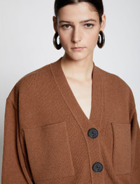 Core Collection The Eco Cashmere Cardigan in brown is crafted in soft, sustainable cashmere to a cropped silhouette. Features exaggerated patch pockets at the chest and a center-front closure with tortoiseshell-effect resin buttons. V-neck. Long sleeves with dropped shoulders and split cuffs. Ribbed trims. Relaxed fit. 100% sustainable cashmere. Eco Cashmere is an upcycled cashmere yarn made in Italy from discarded cashmere sweaters. Upcycled yarns are mixed with new cashmere yarns at a 50/50 ratio to create this product. This fabric is certified to be compliant with the Global Recycle Standard (GRS). SKU: R2117593KK020212