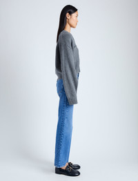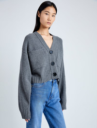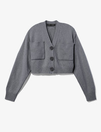 Core Collection The Eco Cashmere Cardigan in grey melange is crafted in soft, sustainable cashmere to a cropped silhouette. Features exaggerated front patch pockets and a center-front closure with contrast resin buttons. V-neck. Long sleeves with dropped shoulders and split cuffs. Ribbed trims. Relaxed fit. 100% sustainable cashmere. Eco Cashmere is an upcycled cashmere yarn made in Italy from discarded cashmere sweaters. Upcycled yarns are mixed with new cashmere yarns at a 50/50 ratio to create this product. This fabric is certified to be compliant with the Global Recycle Standard (GRS). SKU: R2117593KK020031