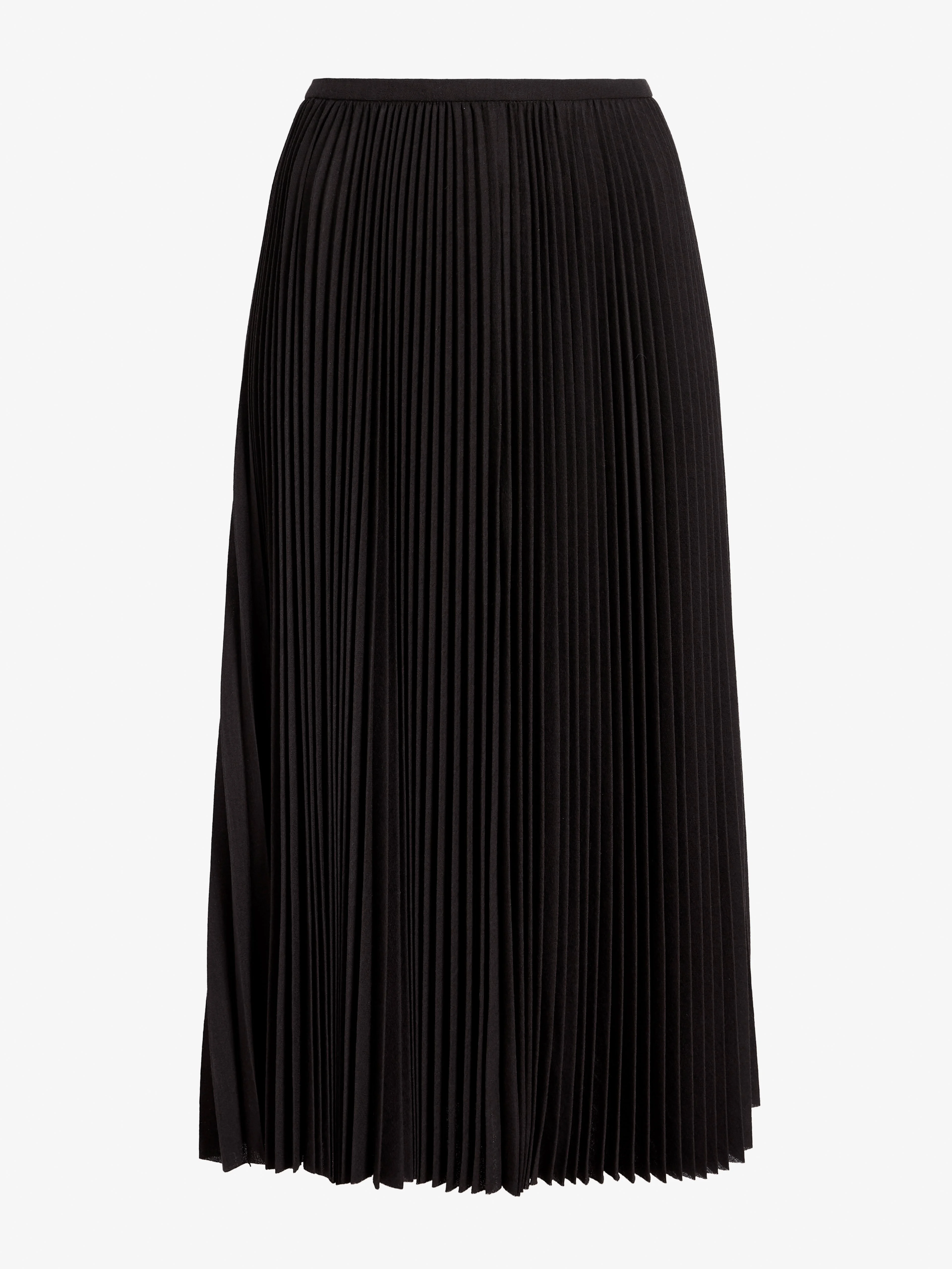 The Eda Skirt in Jersey is crafted to an A-line silhouette, finishing below the knee. Detailed with a thin waistband and fine accordion pleats throughout. Details - Espresso - High waist - Accordion pleats - Side zipper fastening - Mid-length hem - A-line silhouette - 100% polyester - SKU: R2545003JY108223 Size & Fit - Model is 5'10'' with 31'' bust / 34'' hips. Wearing size 4 Care - 100% polyester - Dry clean only