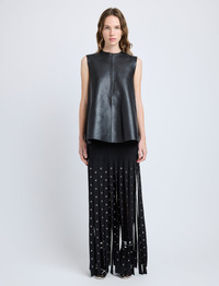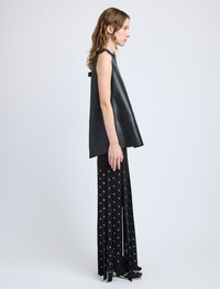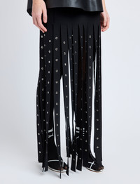 The Effe Skirt in Compact Viscose Knit is tailored to a slim, double-faced silhouette with fluid car wash panels and a side zipper closure. Boasts over three hundred individually finished shiny nickel grommets. Details - Black - High-waisted - Side zipper closure - Shiny nickle grommets - Car wash panels - Floor-length hem - Slim fit - 44% viscose, 31% polyester, 24% polyamide, 1% elastane - SKU: R2527240KY351001 Size & Fit - Model is 5'9.5'' with 32'' bust / 34'' hips. Wearing size Small Care - 44% viscose, 31% polyester, 24% polyamide, 1% elastane - Dry clean only