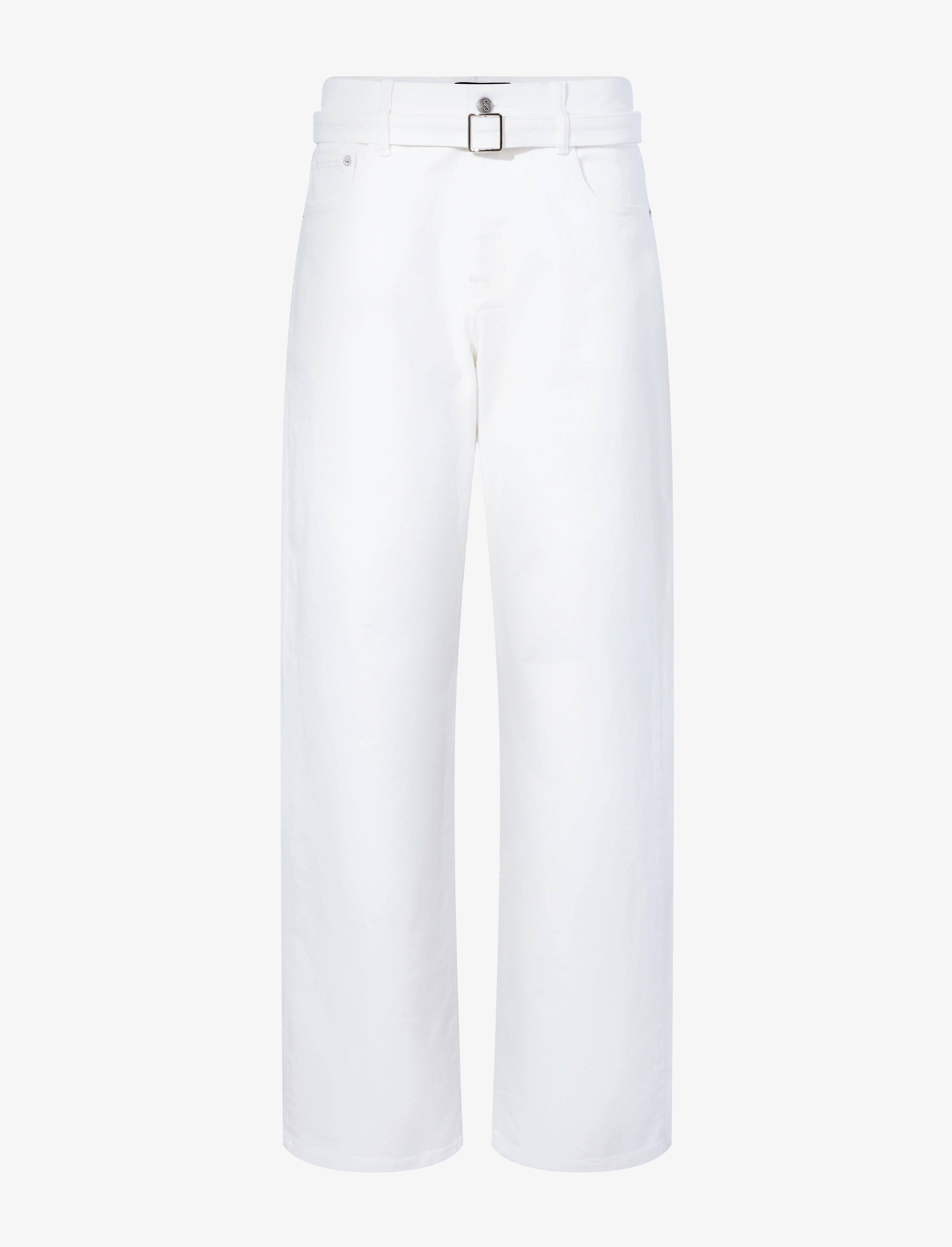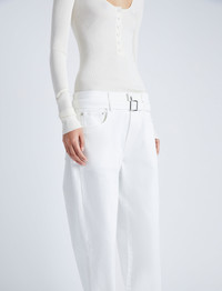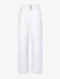 The Ellsworth Jean features a slouchy boyfriend cut. Designed with stretch and detailed with a monogram front button closure, these jeans come complete with a matching denim waist belt. Details - White - Boyfriend cut - Slouchy fit - Monogram button closure - Concealed zip fastening - Sold with matching denim waist belt - 98% organic cotton, 2% elastane - SKU: R2438000DC060100 Size & Fit - Runs true to size. For a slimmer fit that sits on the mid-waist, size down by one size. For an extra slouchy fit that sits low on the hips, we recommend sizing up by one size. Care - 98% organic cotton, 2% elastane - Machine wash warm, gentle cycle. Do not bleach. Do not tumble dry. Low iron. Do not dry clean.