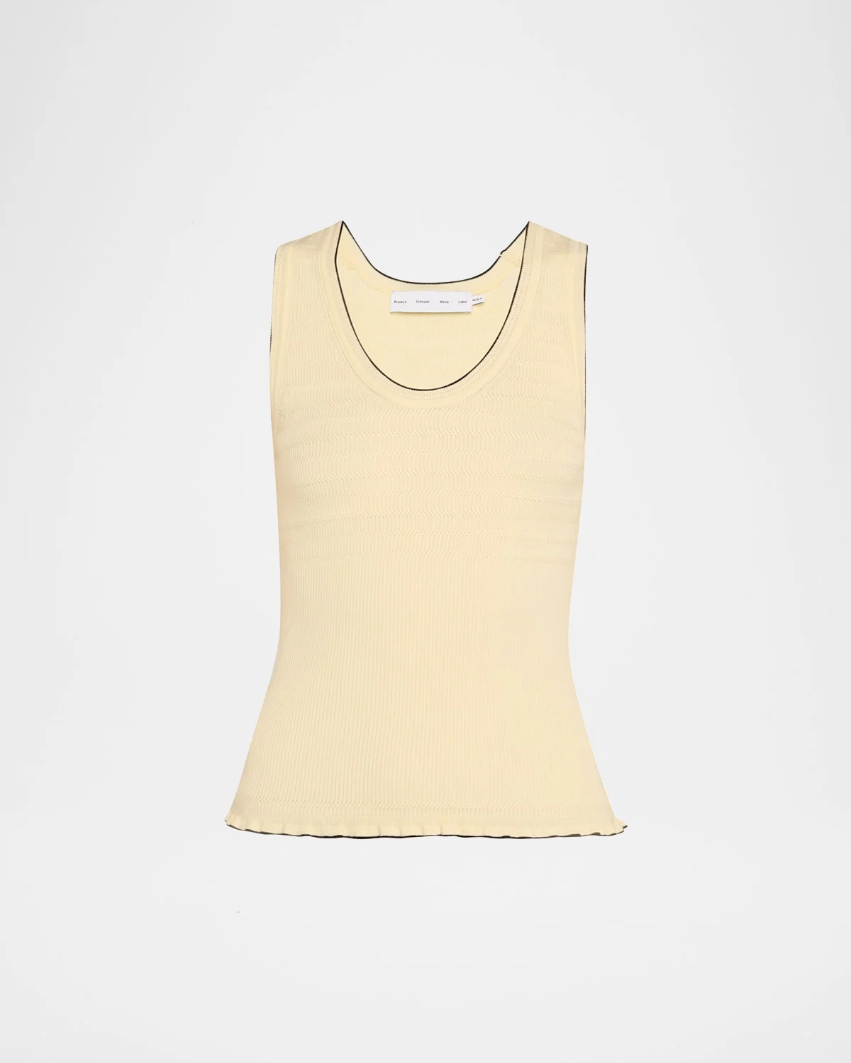 - Proenza Schouler White Label "Eloise" lightweight knit tank top finished with contrast trim - Scoop neckline - Sleeveless - Fitted - Hem sits at the hip - Pullover style - Cotton - Dry clean - Imported
