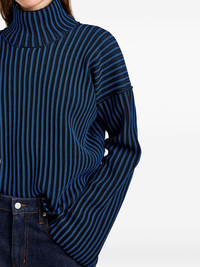 Elysia ladder stripe sweater Highlights - Blue - Stripe pattern - High neck - Long sleeves - Knit construction - Ribbed trims Imported Composition Fabric 100% Washing instructions Read Manufacturer Guidelines