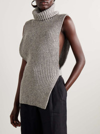 Ember tie-detailed ribbed wool turtleneck vest