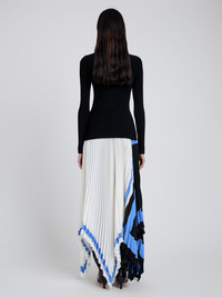 The Emilia Skirt in Technical Crepe features a custom blue coloration intertwined within a large abstract print. Boasts a finely pleated silhouette finished with an asymmetric hem. Details - White multi - Customized blue - Thin waistband - Accordion pleats - Asymmetric hem - 100% polyester - SKU: R2545006BY355114 Size & Fit - Model is 5'10.5'' with 28'' bust / 34.5'' hips. Wearing size 4 Care - 100% polyester - Dry clean only