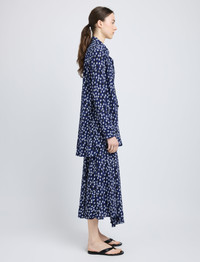 The Emmeline Shirt in Printed Silk Viscose features a delicate floral print throughout and is tailored to a button-down silhouette with a point collar and a subtle A-line finish. Details - Navy multi - Floral print - Point collar - Long sleeves - Button placket - High-low hem - Relaxed silhouette - 50% viscose, 42% silk, 8% spandex - SKU: R2524014BYP297466 Size & Fit - Model is 5'11'' with 30'' bust / 35.5'' hips. Wearing size 4 Care - 50% viscose, 42% silk, 8% spandex - Dry clean only