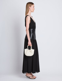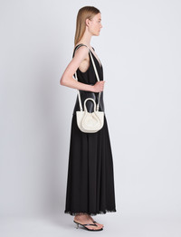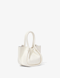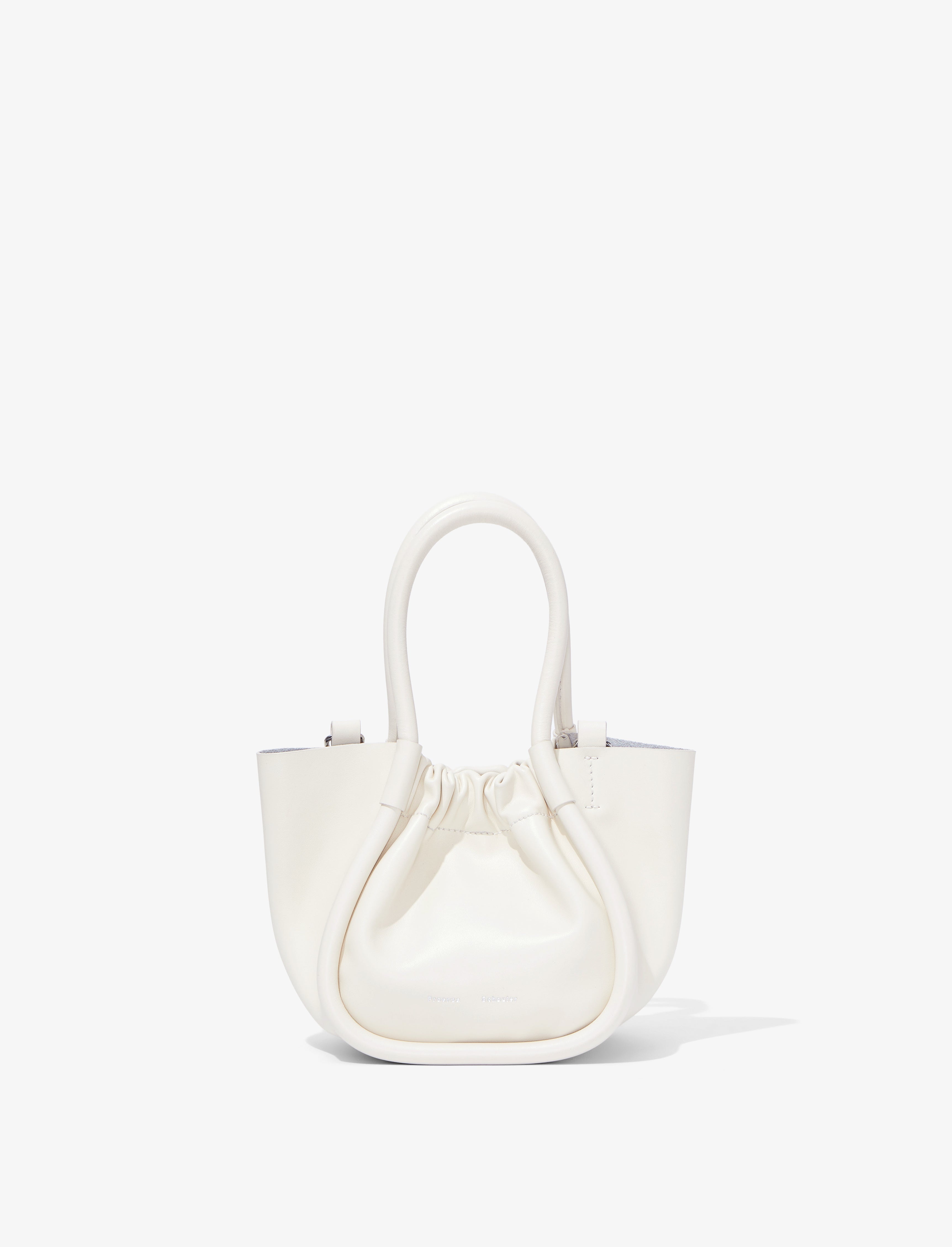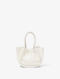 The Extra Small Ruched Tote is crafted to an unstructured, sculptural silhouette. Wide piping sweeps up to a ruched open top and two curved top handles. Details - Ivory - Detachable, adjustable shoulder strap - Top handles - Ruched open top with magnetic fastening - Silver foil logo at front - Suede lining with zip pocket - Silver-tone metal hardware - 100% calfskin - SKU: HB241034C289P105 Size & Fit - W: 21cm x H: 16cm x D: 12cm - Shoulder Strap: 57cm Care - 100% calfskin - Our bags are hand crafted using genuine leather. Variations in tone, marks or grain are common and should not be considered imperfections. Like all natural materials, leather reacts to the atmosphere. Humidity, rain, and sunlight can damage leather. Should a slight white coating appear on the surface of the leather, it can easily be removed using a dry cloth. Should the leather get wet, please absorb the water immediately with a dry cloth. Overexposure to sunlight can stain or alter the color of the leather.