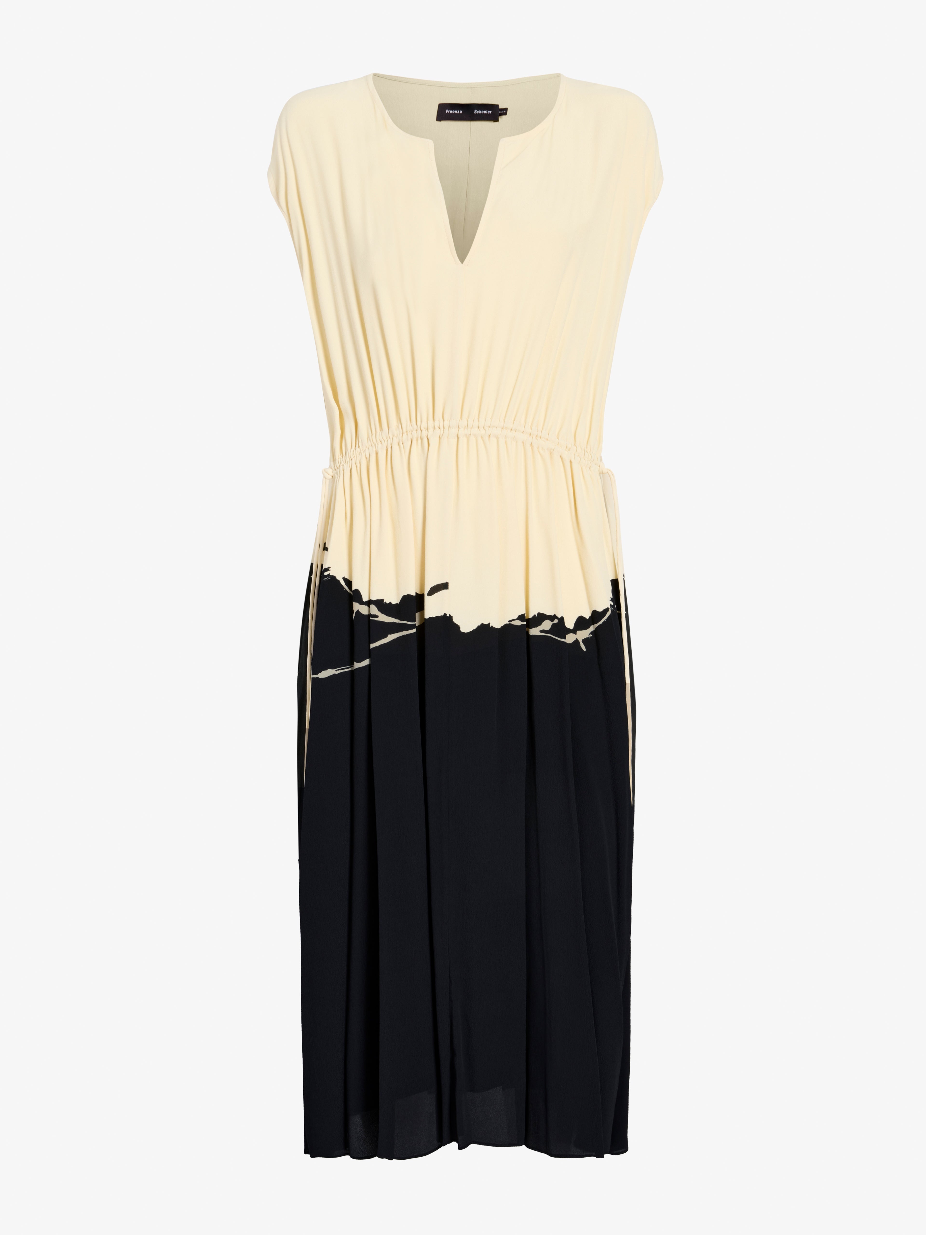 The Ezra Dress in Printed Viscose is crafted with an abstract motif to an airy, short-sleeve silhouette. Detailed with adjustable knots at the front and back to tailor the fit of the waist. Details - Black multi - Abstract motif - V-neckline - Short sleeves - Knotted waist - Side slip pockets - Concealed side zipper closure - Mid-length hem - Relaxed silhouette - Fully lined - 100% viscose - SKU: R2523026BYP137002 Size & Fit - Model is 5'11'' with 30'' bust / 35.5'' hips. Wearing size 4 Care - 100% viscose - Dry clean only