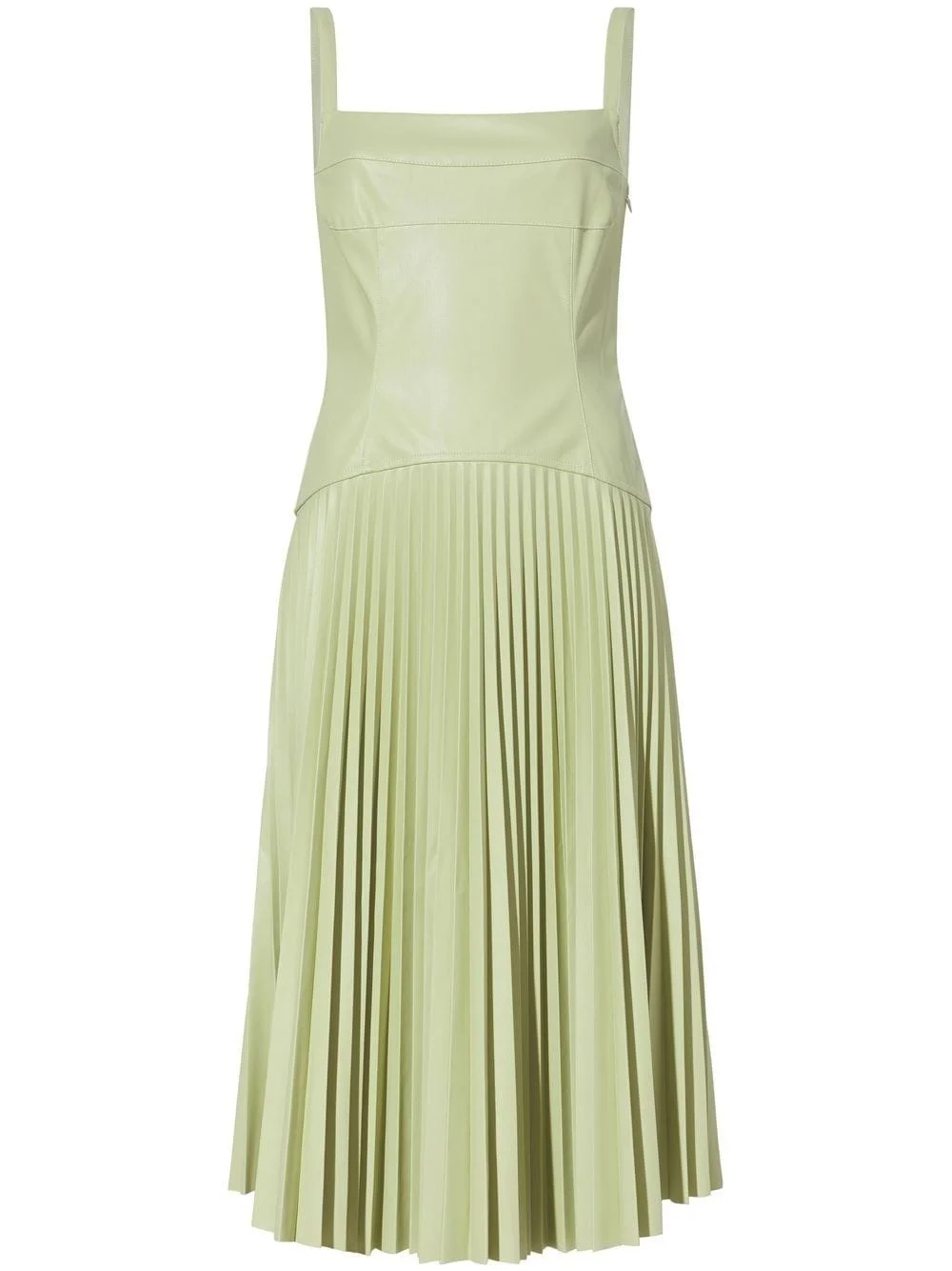 faux-leather drop-waist dress pastel green artificial leather square neck thin shoulder straps drop waist concealed rear zip fastening sleeveless pleated skirt mid-length Imported Composition Lining: Polyester 100% Outer: Polyurethane 100%, Polyester 100% Washing instructions Dry Clean Only