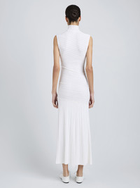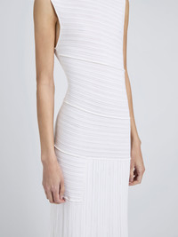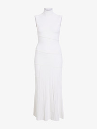 The Federica Dress in Micro Pleat Knit is crafted to a slim silhouette with a wrap-like effect. Features a mock neckline and a softly flounced hem. Details - White - Mock neckline - Sleeveless - Wrap-like effect - Softly flounced hem - Slim silhouette - 48% viscose, 38% wool, 14% polyester - SKU: R2617321KY415100 Size & Fit - Model is 5'10.5'' with 31'' bust / 34.5'' hips. Wearing size Small Care - 48% viscose, 38% wool, 14% polyester - Dry clean only