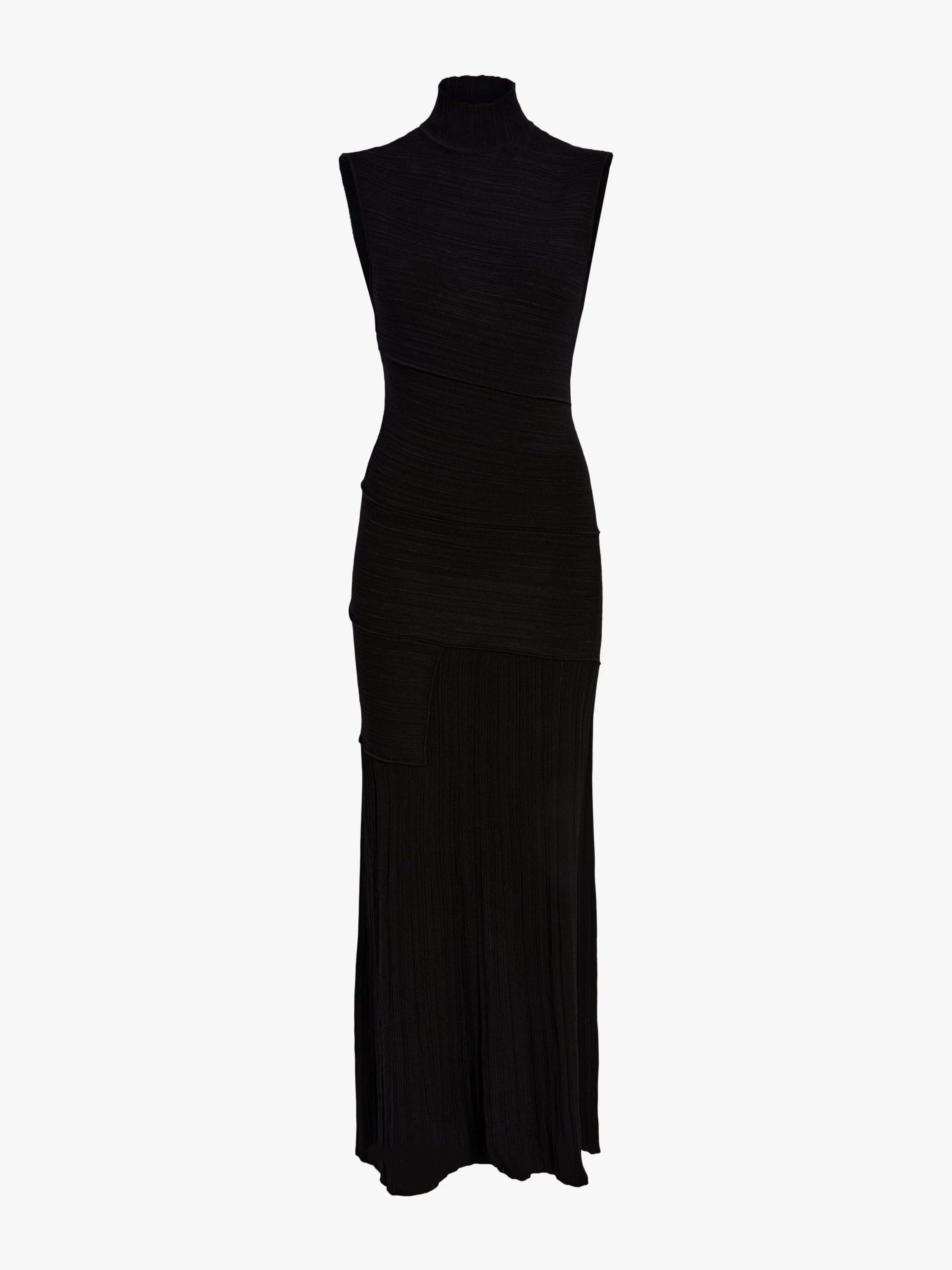 The Federica Dress in Micro Pleat Knit is crafted to a slim silhouette with a wrap-like effect. Features a mock neckline and a softly flounced hem. Details - Black - Mock neckline - Sleeveless - Wrap-like effect - Softly flounced hem - Slim silhouette - 48% viscose, 38% wool, 14% polyester - SKU: R2617321KY415001 Size & Fit - Model is 5'10.5'' with 31'' bust / 34.5'' hips. Wearing size Small Care - 48% viscose, 38% wool, 14% polyester - Dry clean only