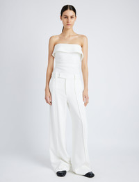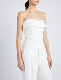 The Felicity Top in Matte Double Crepe is tailored to a slim silhouette with a strapless fold-over top. Details - White - Straight neck - Strapless - Side pleats - Straight hem - Concealed zip side fastening - Slim fit - 70% triacetate, 30% polyester - SKU: R2514003BY116100 Size & Fit - Model is 5'10'' with 32'' bust / 34'' hips. Wearing size 4 Care - 70% triacetate, 30% polyester - Dry clean only