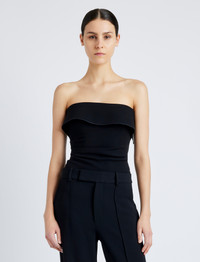The Felicity Top in Matte Double Crepe is tailored to a slim silhouette with a strapless fold-over top. Details - Black - Straight neck - Strapless - Side pleats - Straight hem - Concealed zip side fastening - Slim fit - 70% triacetate, 30% polyester - SKU: R2514003BY116001 Size & Fit - Model is 5'10'' with 32'' bust / 34'' hips. Wearing size 4 Care - 70% triacetate, 30% polyester - Dry clean only