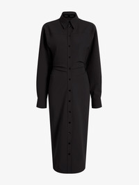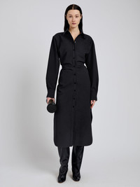 The Flora Dress in Bi-Stretch Cotton Nylon is crafted to a long-sleeve shirtdress, fitted through the body with a cinched waist. Finished with contrast button closures and raised side hems. Details - Black - Stretch fabrication - Point collar - Long sleeves - Contrast button closures - Cinched waist - Raised side hem - Slim silhouette - 73% cotton, 20% polyamide, 7% elastane - SKU: R2543028BC026B001 Care - 73% cotton, 20% polyamide, 7% elastane - Dry clean only