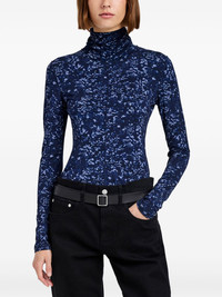 floral-print top Highlights - Navy blue - Floral print - Mock neck - Long sleeves - Front button placket Imported Composition Spandex/Elastane 100%, Rayon 100% Washing instructions Read Manufacturer Guidelines