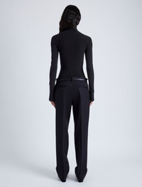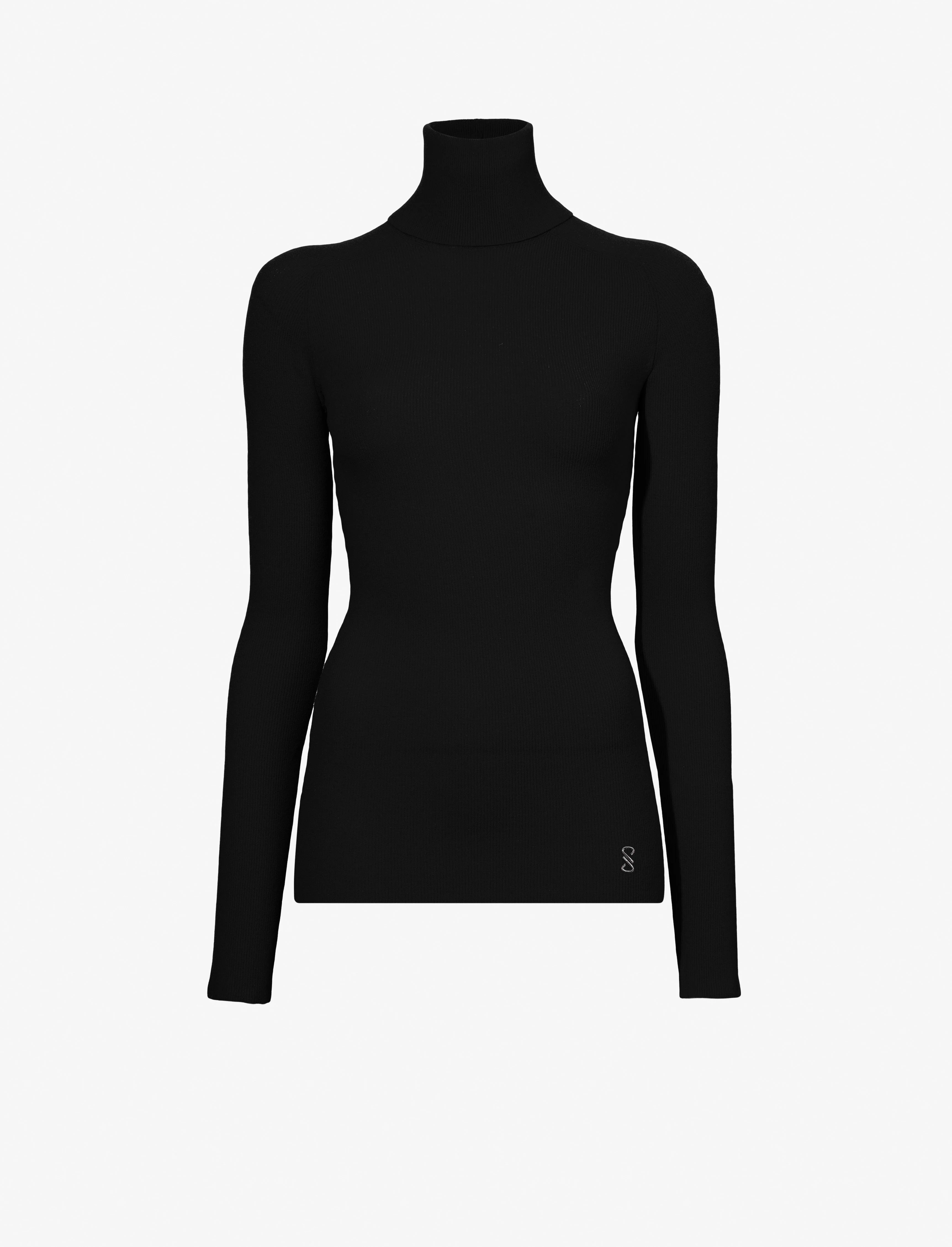 The Fox Top In Matte Viscose Rib is cut to a slim long sleeve silhouette with a straight hem and turtleneck that splits at the back neck. Details - Black - Turtleneck - Long sleeve - Split back neck - Straight hem - Slim fit - 82% viscose, 18% polyester - SKU: R2447194KY283001 Size & Fit - Model is 5'9'' with 30'' bust / 34.5'' hips. Wearing size Small Care - 82% viscose, 18% polyester - Dry clean only