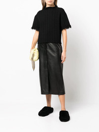 frayed-edge short-sleeve jumper Proenza Schouler's jumper is made from fuzzy cashmere for the softest handle. This black crew-neck iteration has short sleeves trimmed with wispy fringing. Made in Italy Composition Cashmere 100% SIZE & FIT Model measurements Height 5 ft 10 in(1.79 m) Bust/Chest 31.1 in(79 cm) Hips 33.85 in(86 cm) Waist 22.83 in(58 cm) Washing instructions Dry Clean Only