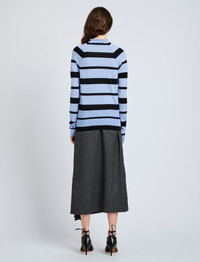 The Gia Top in Superfine Merino Silk is crafted to a slim silhouette with a high rolled neckline and contrast stripe pattern. Details - Blue multi - High roll neck - Long sleeves - Straight hem - Slim fit - 71% wool, 29% silk - SKU: R2537260KW158963 Size & Fit - Model is 5'11'' with 30'' bust / 35.5'' hips. Wearing size Small Care - 71% wool, 29% silk - Dry clean only