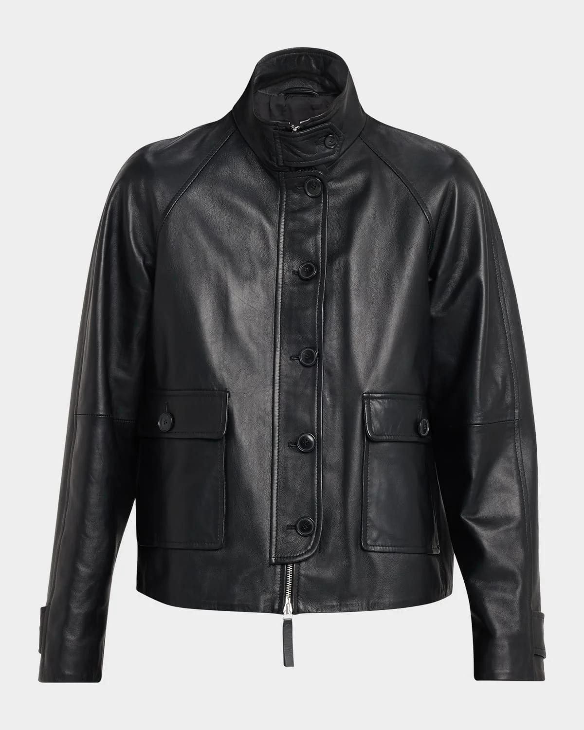 The "Gio" jacket by & nbsp;Proenza Schouler White Label is crafted from luxurious lambskin leather and boasts a relaxed silhouette that can elevate & nbsp;any casual look. Stand collar with throat latch Long raglan sleeves with button cuffs Dual flap pockets Hem falls to the hip & nbsp; Two-way zip-front with button-over placket & nbsp; Leather Professional cleaning recommended Imported SIZE & FITModel measurements: 5 & apos;10" tallModel is wearing a US size 4/Small