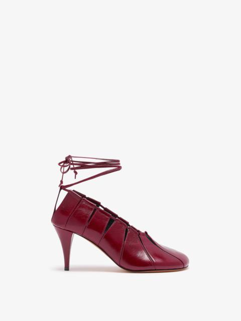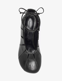 The Glove Hinge Pumps are meticulously crafted with intricate stitching to create a paneled design. A wrap cord pairs with a closed-toe silhouette, encircling the ankle and tying at the back, with adjustable cords for a custom fit around the foot and ankle. Details - Black - Intricate topstitching - Rounded toe - Adjustable side cording - Ankle wrap - Self-tie fastening - Internal toe cap - Upper: 100% calfskin; Sole: 100% calfskin - SKU: SH253067C008WC001 Size & Fit - True to size Care - Upper: 100% calfskin; Sole: 100% calfskin - Please refer to care instructions provided with your order.