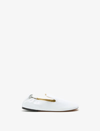 The Glove Ruched Loafers are crafted in slick, shiny nappa leather to a slip-on silhouette that molds around the foot. Complemented with a rounded loafer front and ruched elasticated back. Details - White - Shiny leather - Lightweight - Molds to the foot - Strapped loafer front - Rounded toe - Gathered elastic - Upper: 100% lambskin; Sole: 100% calfskin - SKU: SH252044L004FC100 Size & Fit - True to size Care - Upper: 100% lambskin; Sole: 100% calfskin - Please refer to care instructions provided with your order.