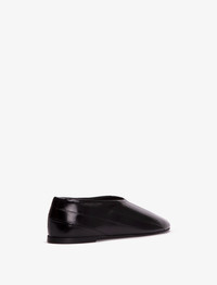 The Glove Slippers are crafted in glossy eel to a fitted, slip-on shape. Featuring a round toe and low stacked heel. Details - Espresso - Glossy finish - Low stacked heel - Logo footbed - Round toe - Upper: 100% eel; sole: 100% rubber - SKU: PS41080D20040999 Size & Fit - True to size Care - Upper: 100% eel; sole: 100% rubber - Please refer to care instructions provided with your order.