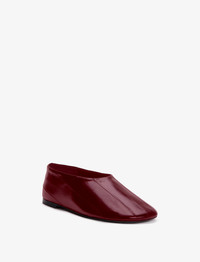 The Glove Slippers are crafted in glossy eel to a fitted, slip-on shape. Featuring a round toe and low stacked heel. Details • Rosewood • Glossy finish • Low stacked heel • Logo footbed • Round toe • Upper: 100% eel; sole: 100% rubber • SKU: PS41080D20041318 Size & Fit • True to size Care • Upper: 100% eel; sole: 100% rubber • Please refer to care instructions provided with your order.