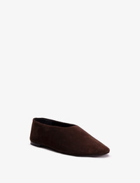 The Glove Slippers are crafted with kidsuede along the upper. Features a round toe, slip-on silhouette with a low stacked heel. Details - Chocolate - Kidsuede - Slip-on silhouette - Molded structure - Round toe - Low stacked heel - Upper: 100% goatskin; Sole: 100% rubber - SKU: SH253063G004FR209 Size & Fit - True to size Care - Upper: 100% goatskin; Sole: 100% rubber - Please refer to care instructions provided with your order.
