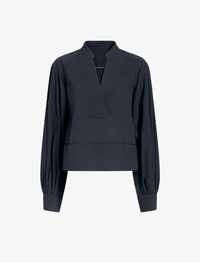 The Grayson Top in Eco Cotton Poplin features a relaxed silhouette with eyelet trim detailing. Finished with a V-neckline, blouson sleeves and buttoned sleeve cuffs. Details - Black - V-neckline - Blouson sleeves - Button sleeve cuffs - Eyelet trims - Relaxed fit - 96% cotton, 4% elastane - SKU: R2534000SC083001 Size & Fit - Model is 5'9.5'' with 32'' bust / 34'' hips. Wearing size 4 Care - 96% cotton, 4% elastane - Dry clean only