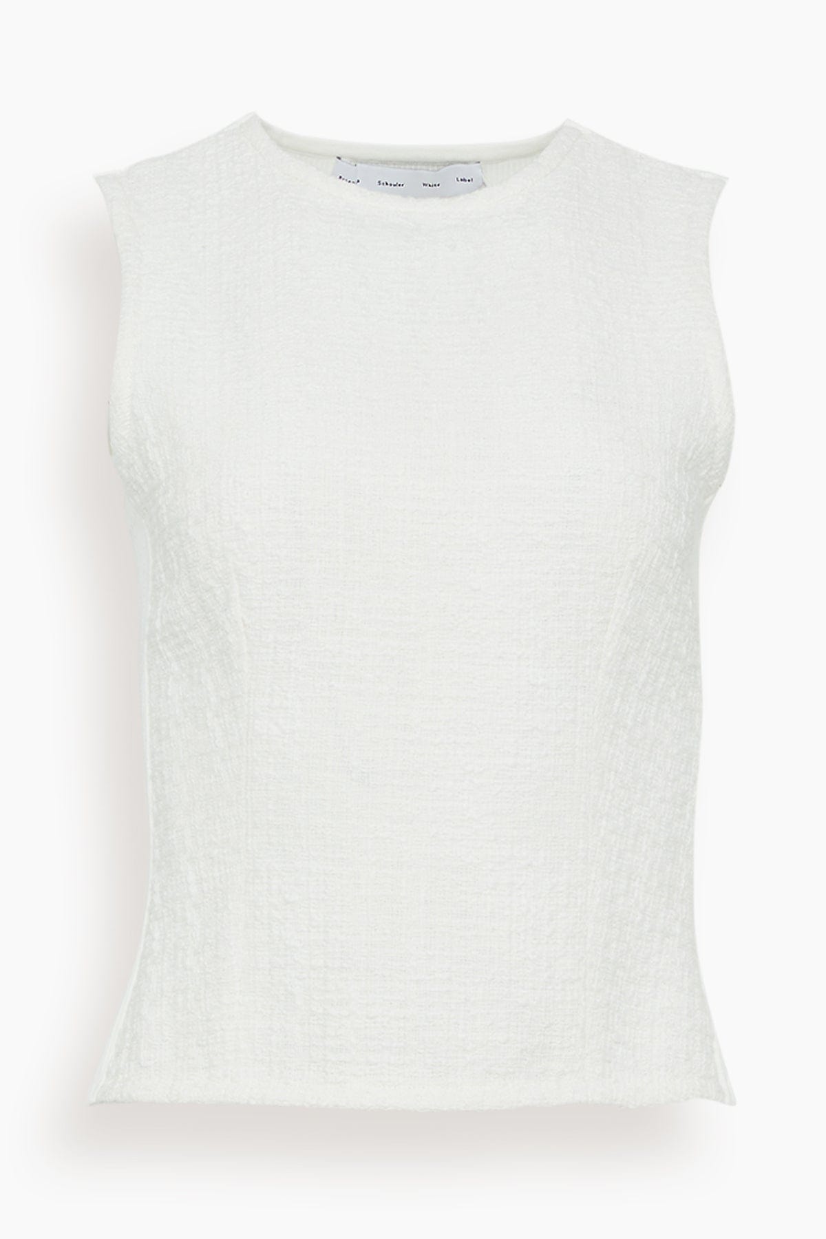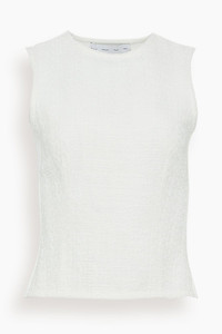The Proenza Schouler White Label Hazel Top is perfect for layering or wearing solo. You'll love the slim silhouette of this tweed top. Wear yours with trouers and sandals. - Fits true to size, take your normal size - Sleeveless top - Slim silhouette - Crew neckline - Tweed material - 100% Cotton