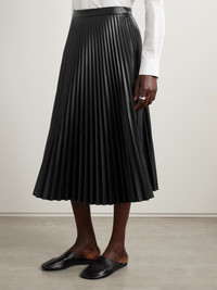 Daphne pleated vegan leather midi skirt Black