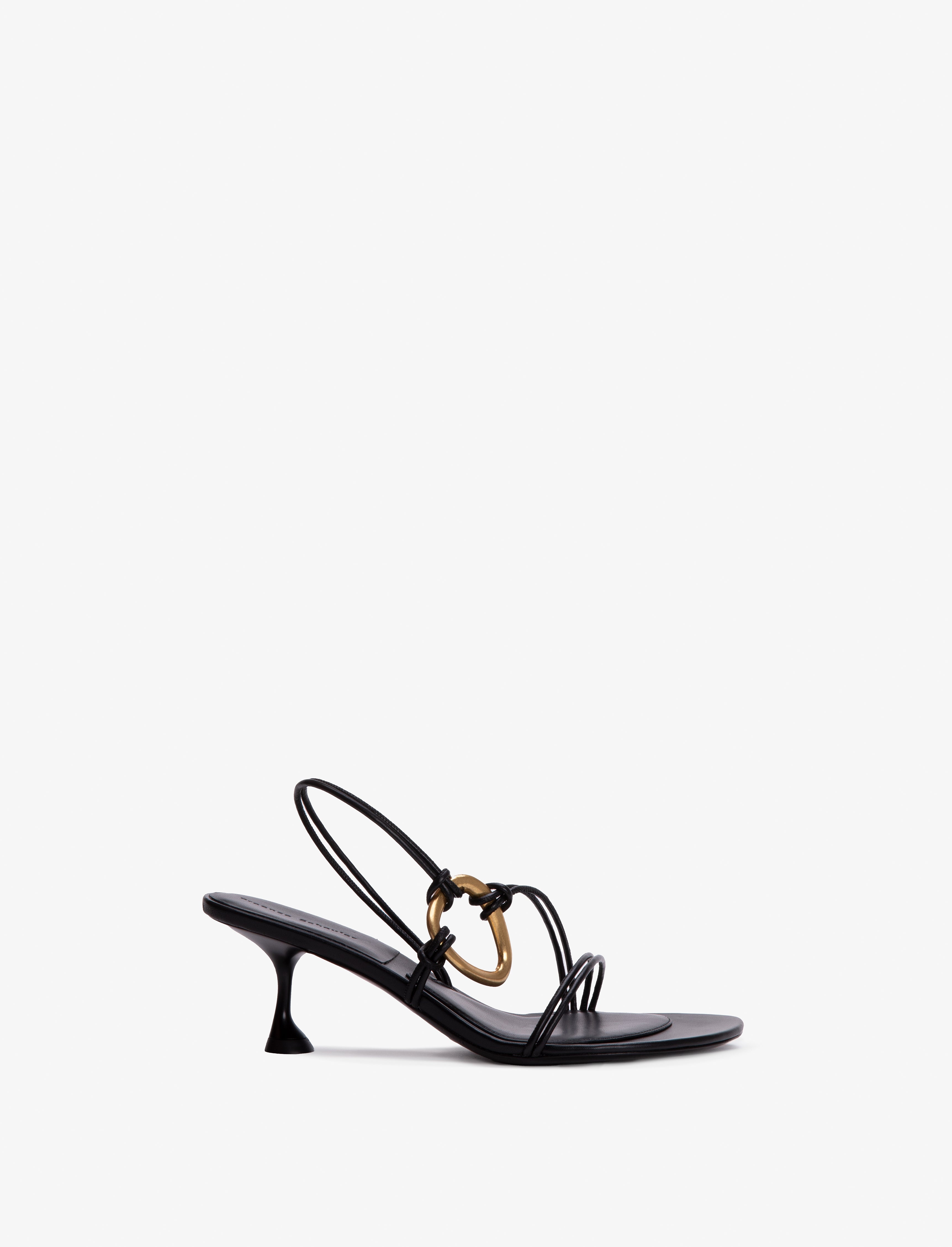 The Hoop Slingback Sandals are crafted in smooth lambskin to a strappy heel. Designed for an organic hand molded shape, they're finished with an aged brass hoop detail Details • Black • 60mm heel • Minimalistic silhouette • Heeled sandal • Slender front straps • Crossover detail • Aged brass hardware • Upper: 100% lambskin; sole: 100% leather • SKU: PS43011A20000999 Size & Fit • True to size Care • Upper: 100% lambskin; sole: 100% leather • Please refer to care instructions provided with your order.