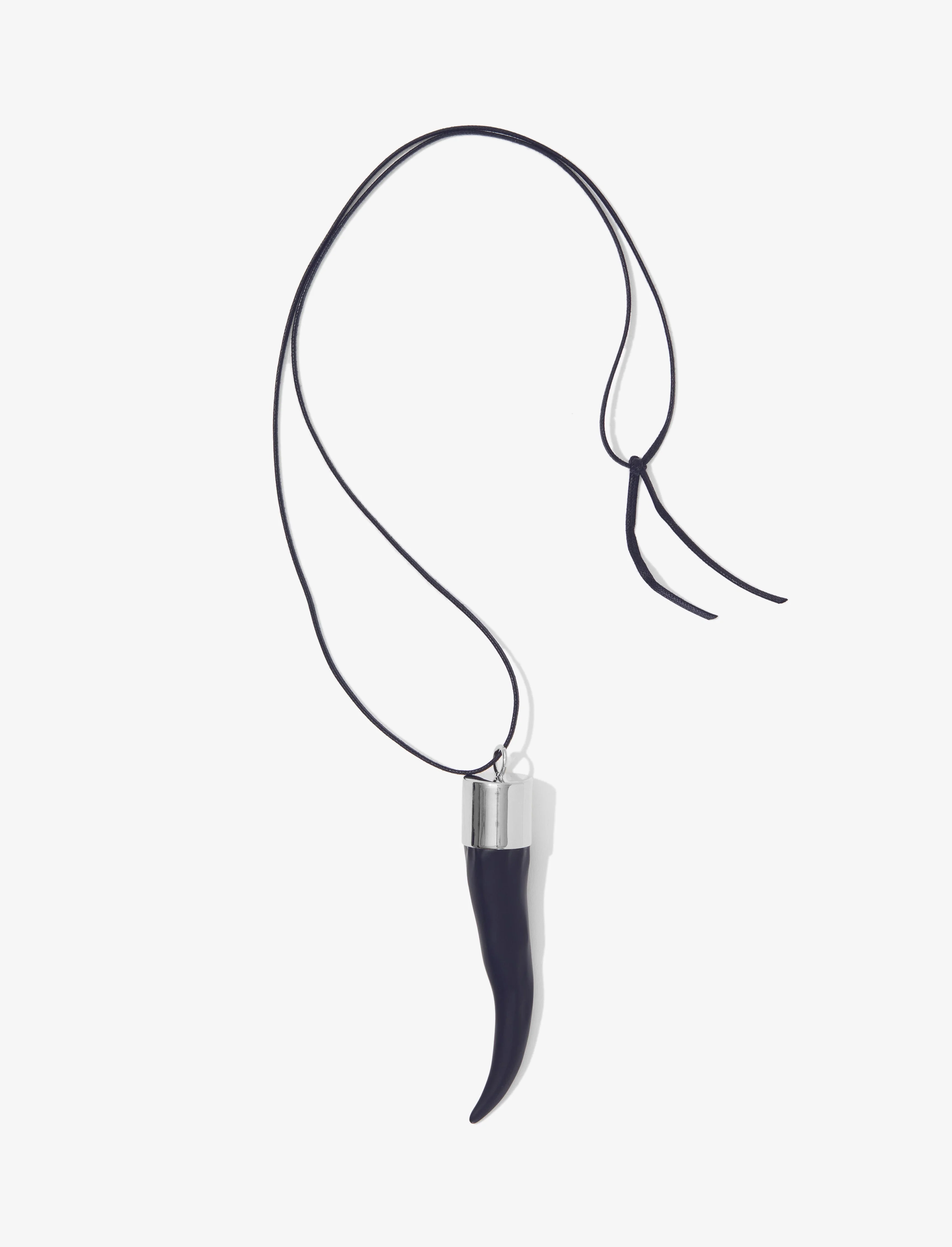 The Horn Pendant Necklace features a sculptural horn-shaped centerpiece with black and silver-tone hardware. It suspends from a cord with a self-tie fastening. Details - 100% brass - SKU: JW234011X248P964 Size & Fit - One size